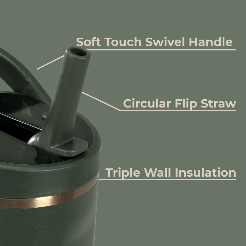 The HydroJug Sport 20oz in Pine is designed for active lifestyles, combining durable performance with a sleek forest-green finish. Compact yet powerful, it���s built for commuting, training, and everyday hydration. Sized at 20oz, this Sport Bottle slips easily into backpacks, tote bags, or standard cup holders. Triple-layer insulated stainless steel keeps drinks ice-cold for hours, ensuring reliable hydration from morning to night. Fully leakproof with the straw down, this tumbler features a circular flip straw for quick sips, ergonomic side grips, and a bucket handle for comfortable transport. A protective rubber base adds durability, while the dishwasher-safe body makes cleaning effortless. Balanced in size and built for everyday wellness, the Pine water bottle is hydration made practical, portable, and dependable. Dimensions: 3.4" x 3.4" x 7.64" Base diameter: 2.59" Capacity: 20 ounces of water ~ 592 mL Weight: 14.72oz ��� WARNING: CHOKING HAZARD ��� Small Parts. This product contains small components that may pose a choking risk. Not suitable for children under 3 years old. Inspect regularly for damage. For questions or concerns, contact customer support.